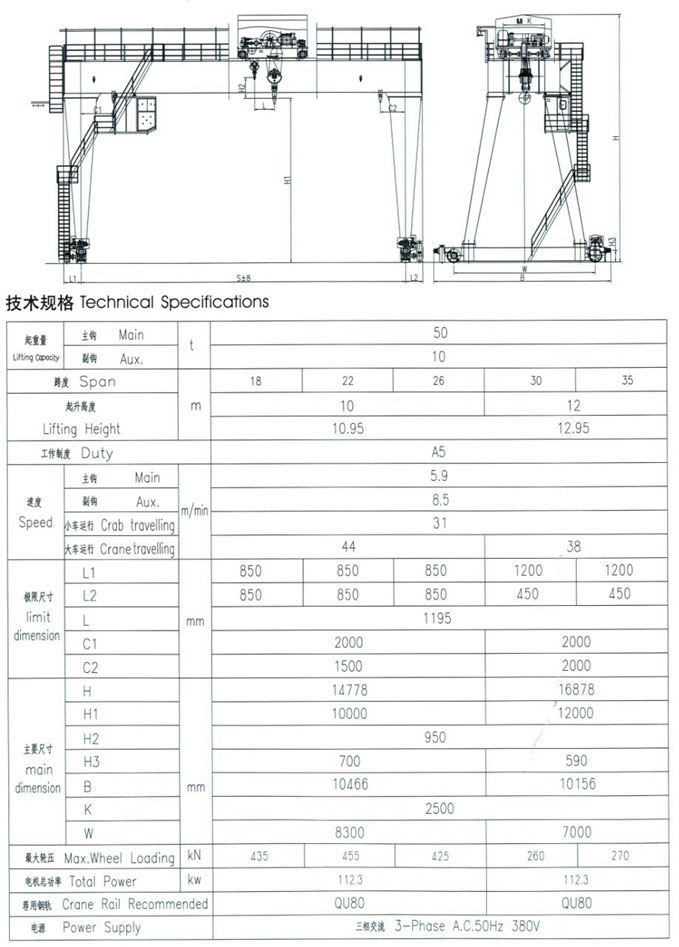 产品说明: 图示为我公司为阳泉煤业集团制造的MG35/10T起重机